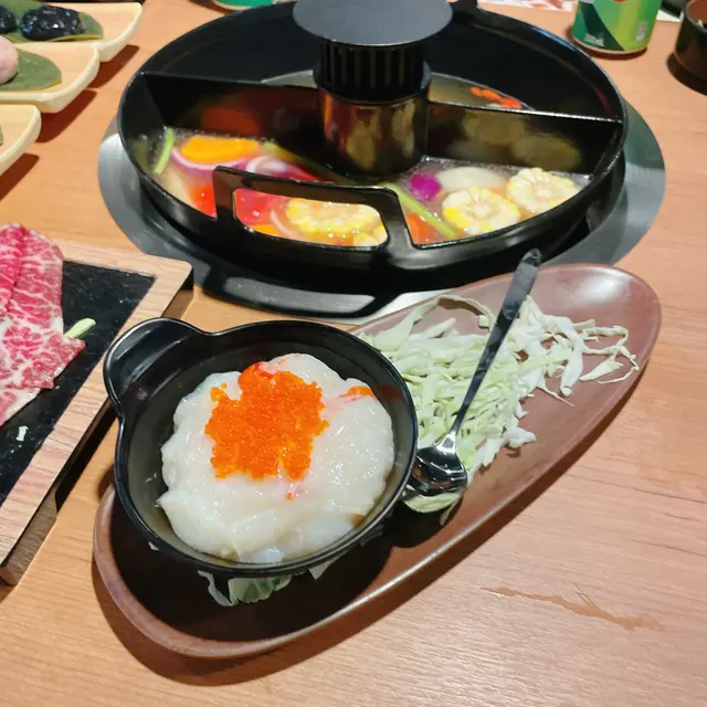 自己刮落鍋好過癮~墨魚膠鮮甜混爆脆蟹籽,啖啵啵聲口感💥,但略嫌唔夠蟹籽份量。