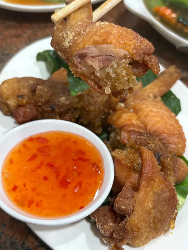 🐥 手工菜雞全翼去骨釀入糯米再炸得香脆,糯米香甜、雞肉多汁鮮味