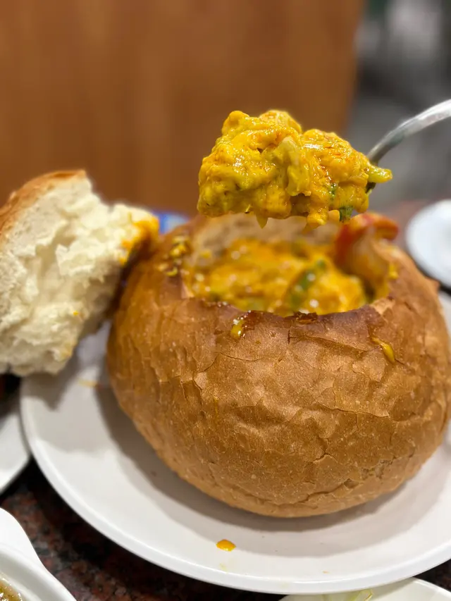 🍛 大包jumbo size,農夫包脆卜卜,剪開一件件點黃咖喱超好食,揀咗雞肉嫩滑份量多