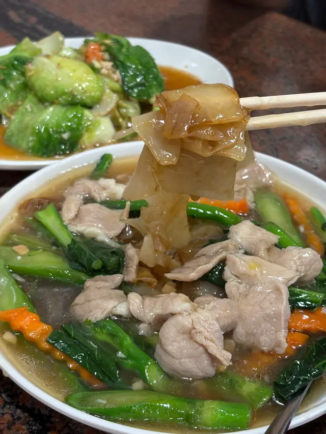 🍲 寬河粉同豬肉片都好軟滑,連埋清甜芥蘭一齊炒份量十足