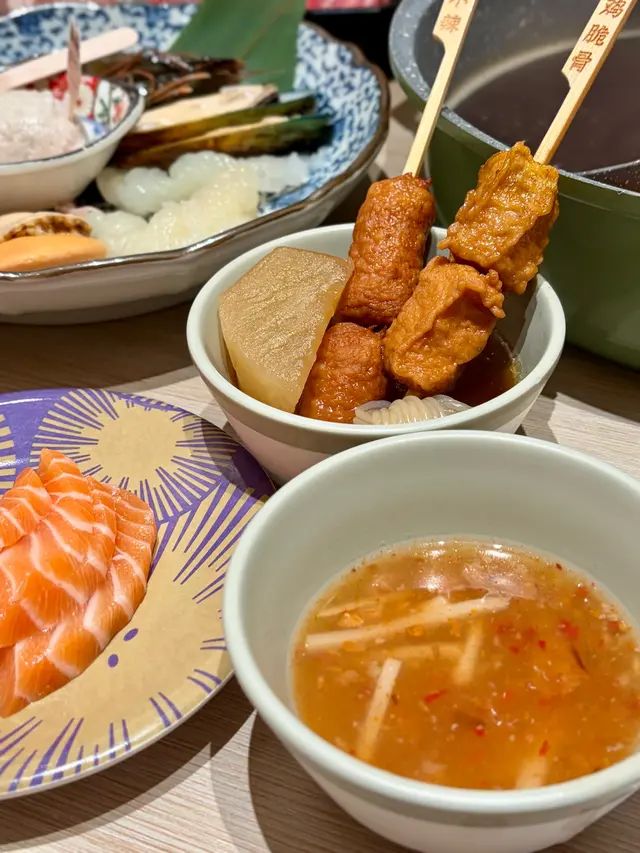 海鮮方面,蝦、墨魚滑都好彈牙,三文魚刺身厚切新鮮,仲有迷你丼飯