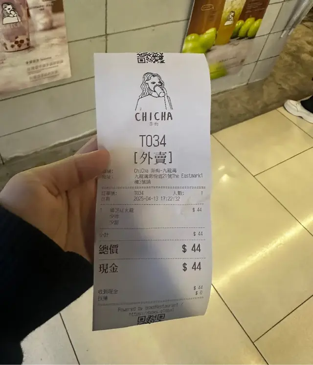 收完錢,我見到張單寫住「綿芝紅火龍,少甜少冰」