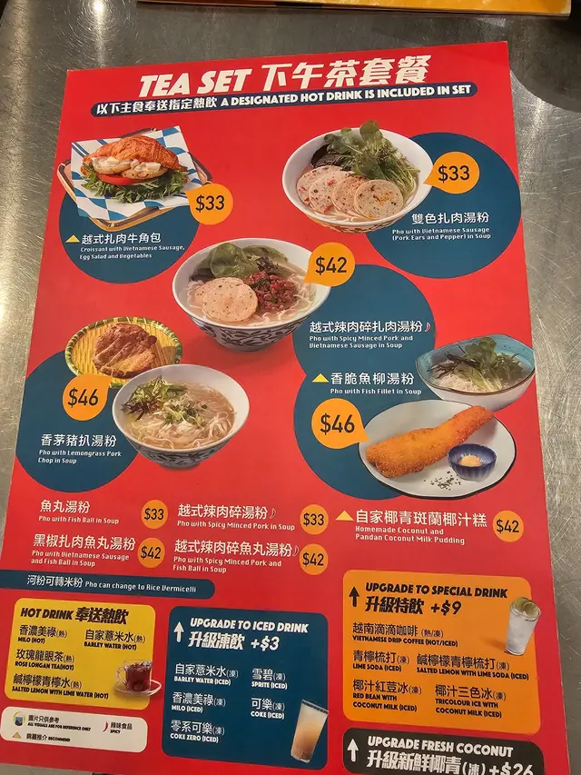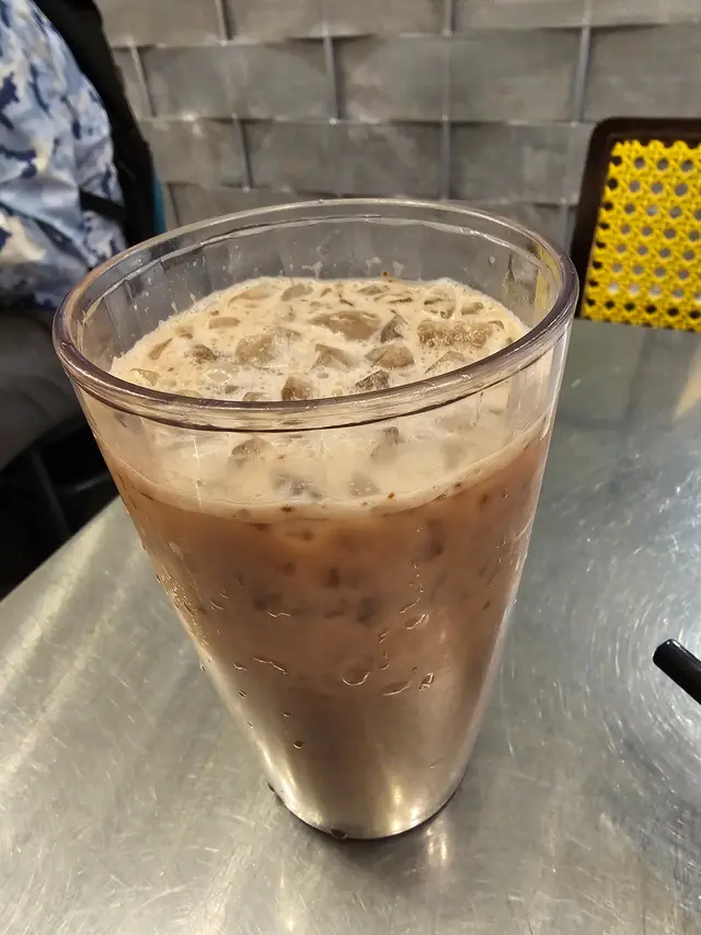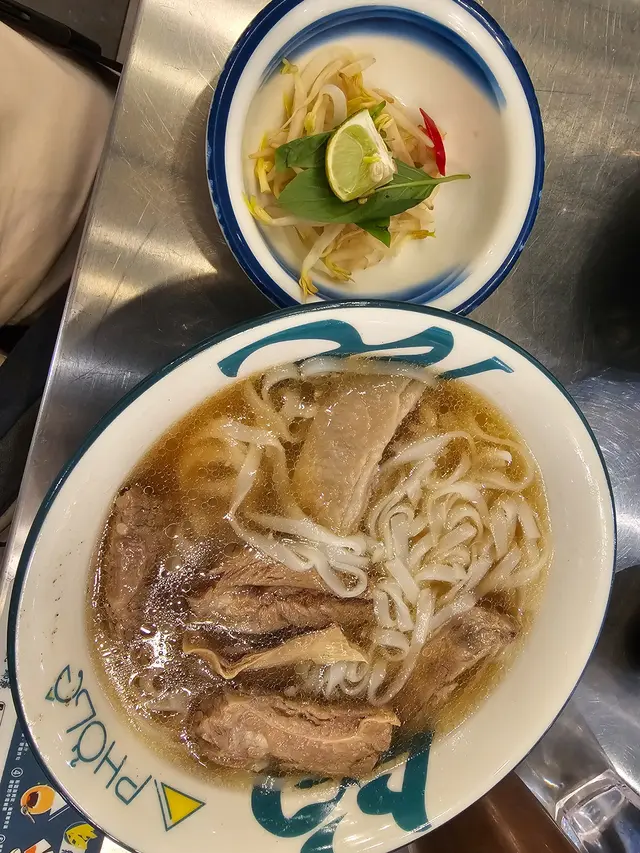 河粉用白瓷碗盛載,湯色澄清偏深,油分少,第一啖已嘗到牛骨甘香;粉條滑而不斷,份量足夠一餐。薄切熟牛仍帶微粉紅,肉味濃但不韌,我加入芽菜、洋蔥絲、青檸角和辣醬,辛香與酸味即時把湯底提升一級,喝到尾仍不覺鹹滯。美祿方面,頂層奶泡厚身,朱古力麥芽香甜度固定,冰塊比例剛好,喝一口既降溫又解膩。