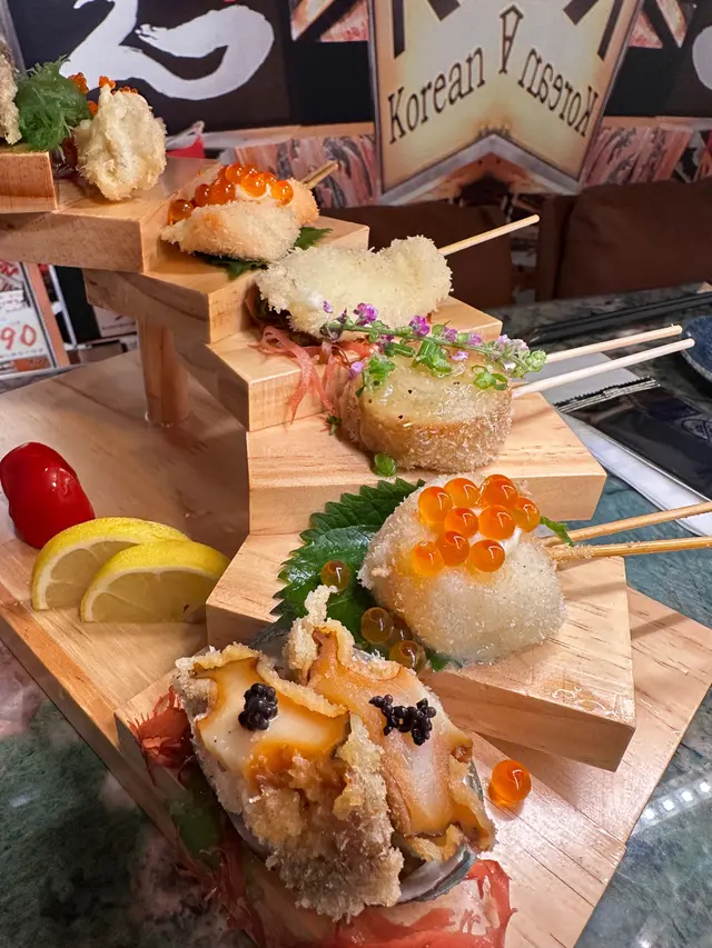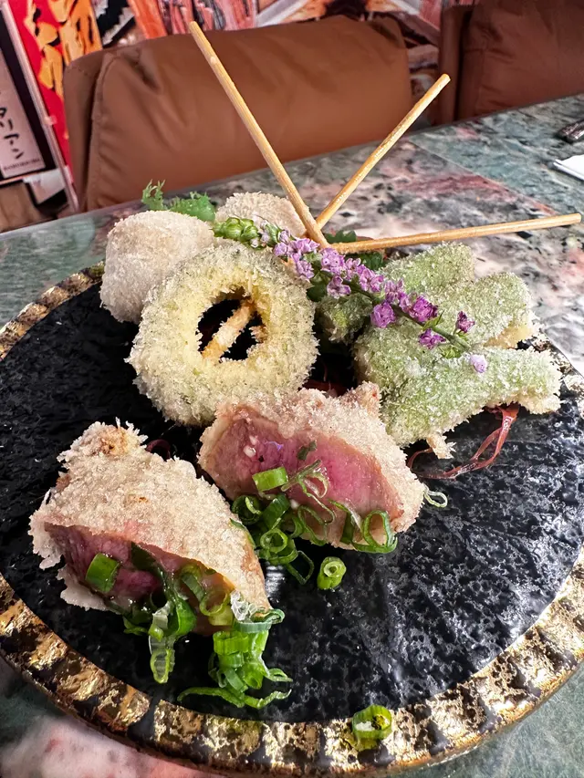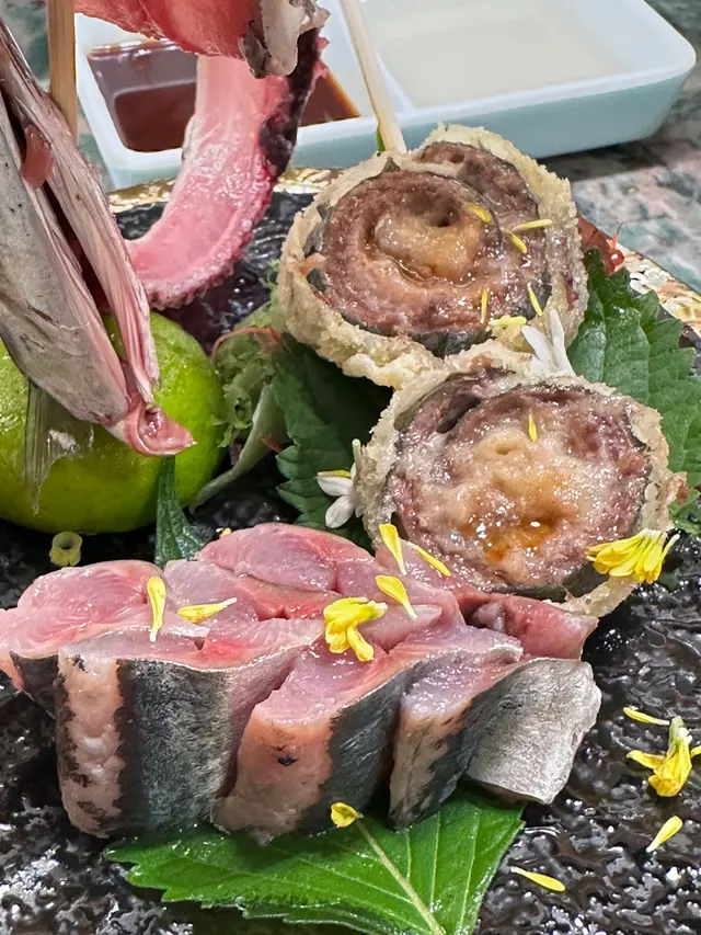 一款製成酥脆卷物,外層輕薄脆口,內裡柔軟;另一款則為鮮美刺身,蘸特調醬汁凸顯魚鮮。