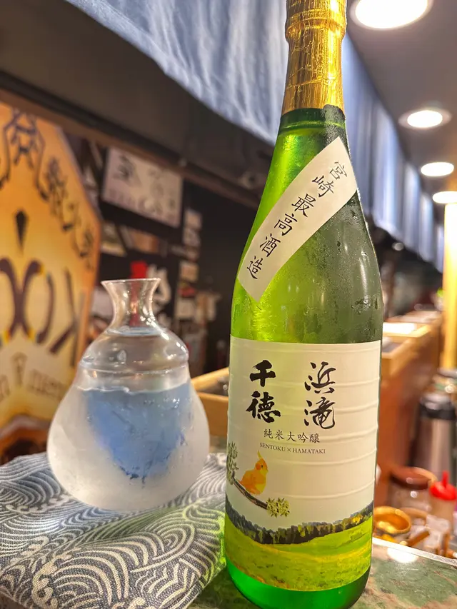 吃完不同的串揚後,我們叫了這瓶大吟釀淺酌。這款呈現琥珀光澤的純米大吟釀,開瓶即飄散優雅果香,入口時酒體綿柔滑順,收尾則帶有淡雅米麴的回甘。清澈酒液真能洗去油炸物的餘膩。