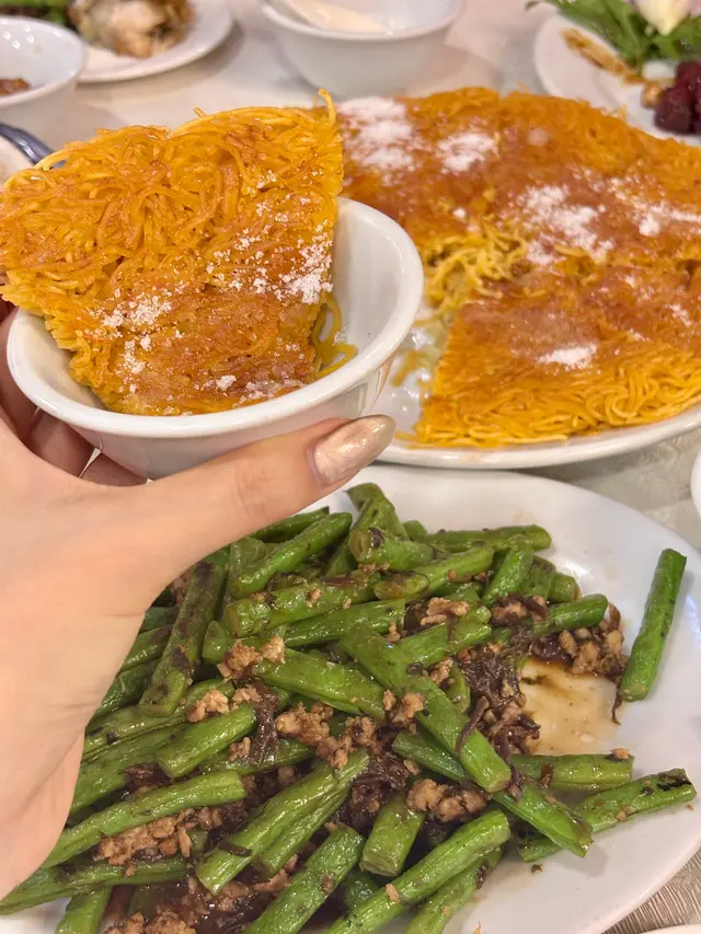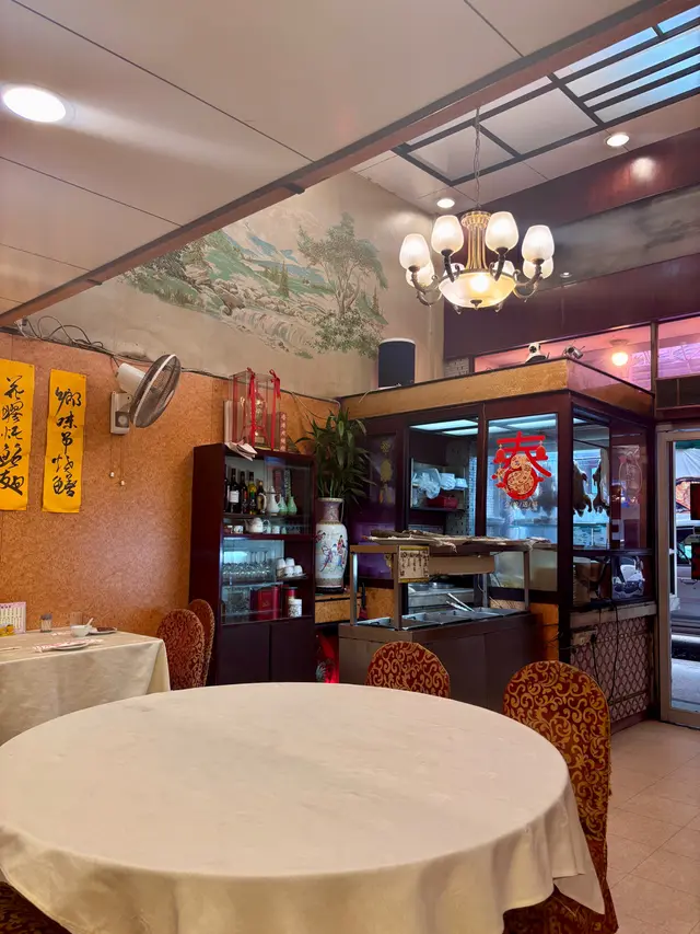 最出片的当属店内那面红金配色的龙凤浮雕背景墙,复古又大气,老板说这可是香港电影圈的“御用布景”!《枪火》和《九龙城寨之围城》里的经典对手戏就拍自这里,十几二十部港片、电视剧都来取过景。坐在背景墙前吃饭,抬头就是电影同款镜头,连光线都自带港片滤镜,影迷来港一定要来打卡这处“活的电影记忆”~