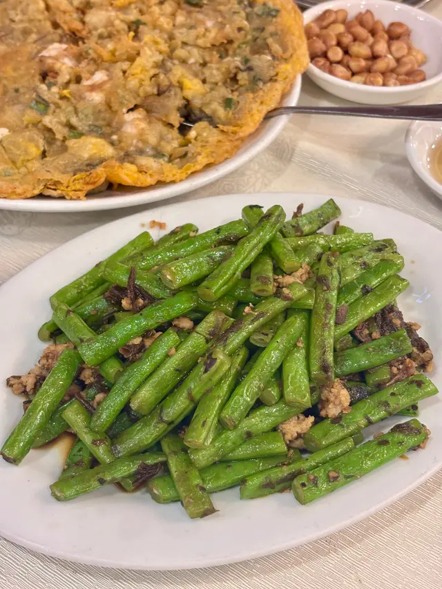 •🥗榄菜四季豆:脆爽入味,榄菜的咸香裹着豆角的清甜;