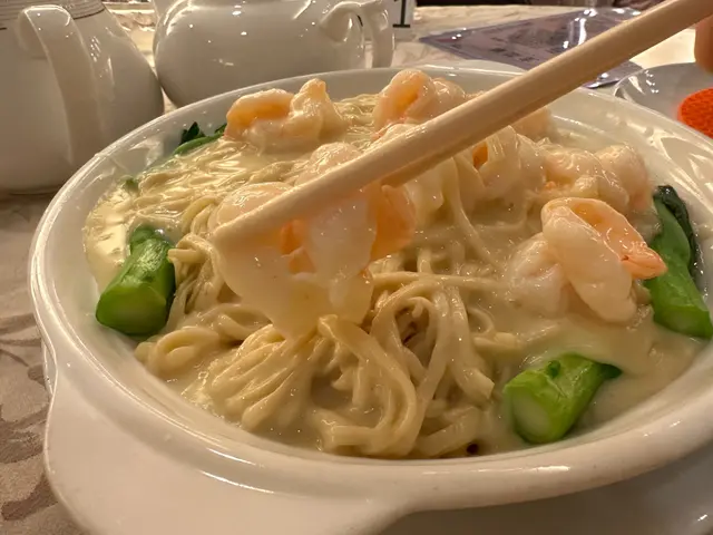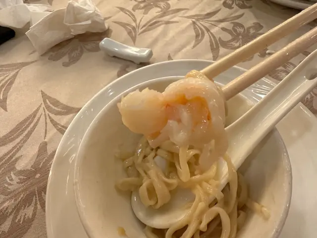 芝士蝦球伊麵同樣大碟,蝦球嘅大細都好夠大隻啖啖肉。伊麵嘅芝士汁,亦都好多,令到成個麵都充滿濃郁嘅芝士味,誠意滿分。味道方面,蝦球口感彈牙爽滑,味道清甜。芝士伊麵麵質扁身,口感較軟,所以非常之容易咬開。加上每一條麵都充滿着邪惡嘅芝士汁,芝士汁亦唔會杰撻撻,令每一啖麵都有淡淡都有芝士味,令人食唔停手。