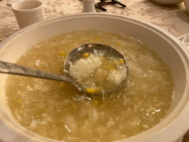 講講個湯,粟米魚肚羹非常之大碗,飲晒真係好飽肚。味道方面,調味適中,打芡打得非常好,唔會話成煲嘢覺得好膠或者太水。值得一讚嘅地方係魚肚非常之大塊,而且口感非常順滑,味道清爽冇腥味。感覺充滿着膠原蛋白,再加埋蛋花,令口感更豐富。佢都有俾埋胡椒粉等食客自己落,所以就唔使怕唔食得辣。