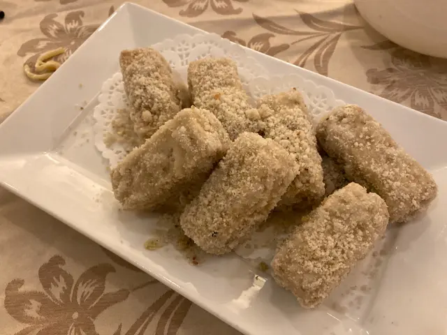 甜品係反沙芋頭,依個要同職員落單,就冇得Qr code落。反沙芋頭其實就即係將砂糖均勻咁包係芋頭外層,之後不停翻炒,直至砂糖變成一層外皮包着芋頭咁。成碟反沙芋頭有足足八舊,真係都差啲食唔晒。味道方面,上碟嗰陣時舊舊都熱辣辣,雖然有啲辣口,但熱力令到砂糖外皮更加脆口同香甜,芋頭亦都好甜,同埋軟滑,外脆內軟,令口感更豐富。而且個砂糖皮唔會話太厚令到面太膩嘅感覺。