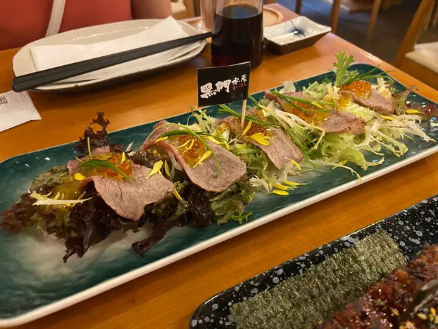 因為朋友怕太生嘅野,所以我哋首先叫咗個漁貝燒,真係超大隻,係一個手板咁大嘅貝殼,入邊好細心已經幫貝殼起晒肉剪好入口大小,所以食嘅時候唔會好麻煩,好方便,一隻貝殼入面嘅帶子竟然可以切到四至五粒!入邊仲加咗其他嘅海鮮入去一齊煮,滿滿嘅湯汁,我開頭仲以為係燒烤添,海鮮新鮮得來又暖胃,入面嘅貝肉都係爽彈鮮甜,仲有蝦同埋蠔等等其他嘅海鮮!雖然冇生食魚生咁原汁原味,但係湯汁又有另一番海鮮嘅風味!