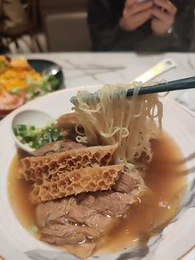 牛筋燜到彈牙得黎軟淋入口即溶,牛腩肥瘦均勻夠入味,金錢肚爽口無腥味,湯底清甜帶淡淡清香,幼麵煙煙韌韌吸晒湯汁,最後湯底都差唔多飲曬