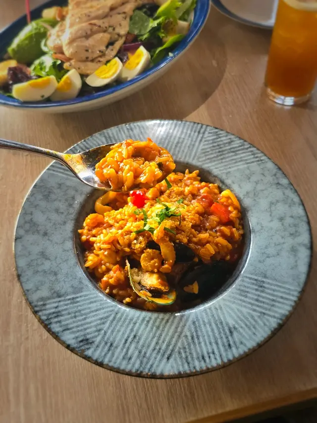 香草蕃茄海鮮意大利飯〉經常點意粉的我,是時候轉意大利飯了,因爲我很掛念意大利飯的半生熟口感🫦,配料又有原穀青口,魷魚及蝦,配上鮮甜美味的番茄醬,份外滋味!