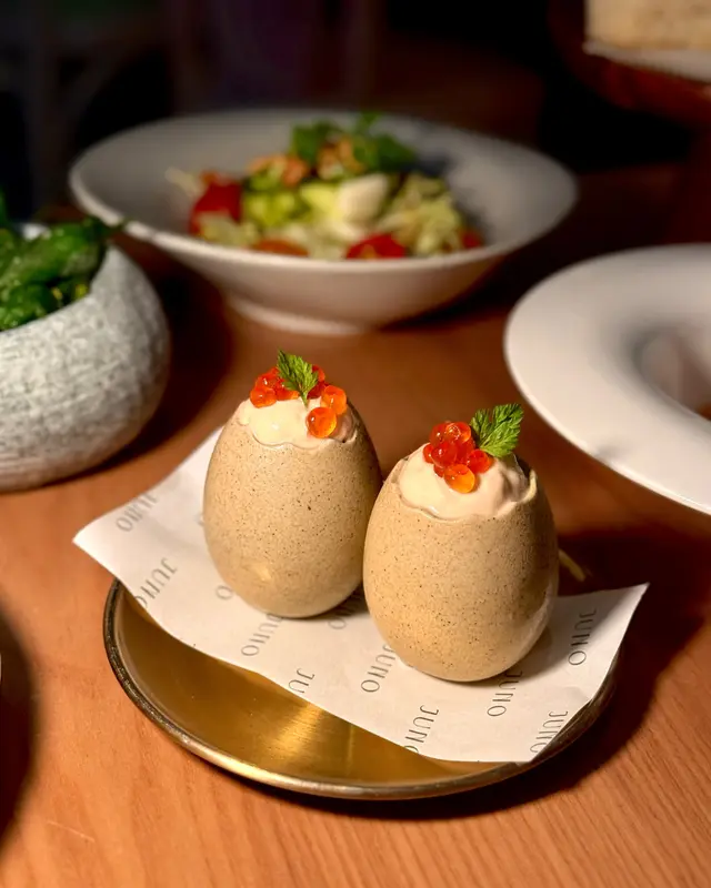 ❥𓂃前菜方面,佢哋嘅𝙀𝙜𝙜 𝙏𝙤𝙣𝙣𝙖𝙩𝙤吞拿魚蛋黃醬泡沫值得一讚!用蛋殼作為器皿,裡面有意式吞拿魚醬、酸豆同三文魚籽,口感𝐜𝐫𝐞𝐚𝐦𝐲又酸酸甜甜,搭配得啱啱好,𝐤𝐞𝐞𝐩到水準♡