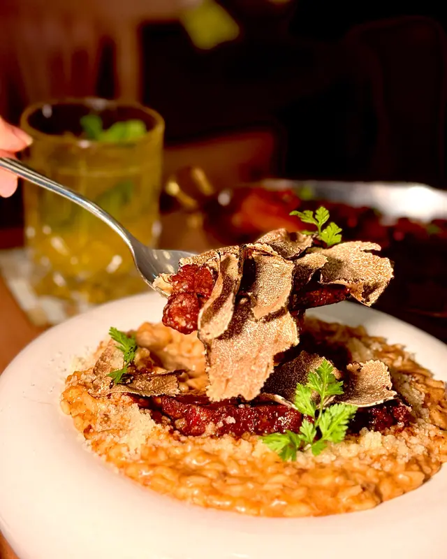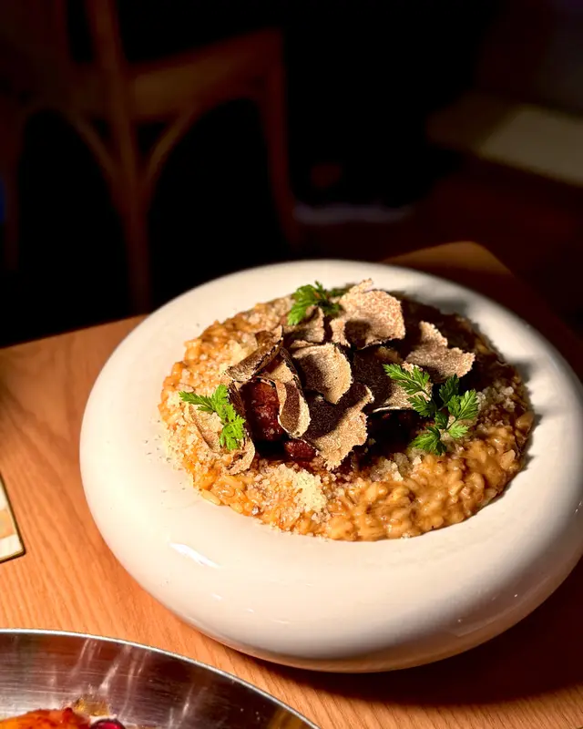 ❝ 今次專登嚟就係想試佢哋嘅𝙏𝙧𝙪𝙛𝙛𝙡𝙚𝙙 𝘼𝙣𝙜𝙪𝙨 𝘽𝙚𝙚𝙛 𝘾𝙝𝙚𝙚𝙠 𝙍𝙞𝙨𝙤𝙩𝙩𝙤 (+$𝟒𝟎) 黑松露安格斯牛面肉燴飯,飯粒煮得啱啱好,吸曬濃郁嘅牛肝菌同帕瑪森芝士香,加上刨上新鮮的松露,每一啖都充滿層次感,香氣四溢,搭配兩大塊軟嫩嘅牛面肉,真係好滿足(*˙˘˙)♡