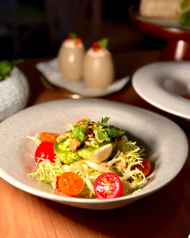 另外𝘽𝙪𝙧𝙧𝙖𝙩𝙖 𝙋𝙪𝙜𝙡𝙞𝙚𝙨𝙚 布拉塔流心水牛芝士,配有機小蕃茄、羅勒橄欖油同狗芽菜沙律,榛子碎嘅香脆口感增添咗風味,好清新開胃 ʚ(•”̮•)ɞ