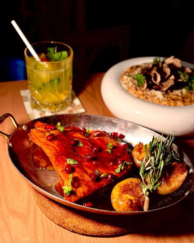 ꒰◍ˊ◡ˋ꒱੭⁾⁾ 𝙋𝙤𝙧𝙠 𝙍𝙞𝙗𝙨 意外地出色,肉質嫩滑,搭配石榴糖蜜和柑橘香料,甜中帶鹹,帶炭烤香 好滋味~