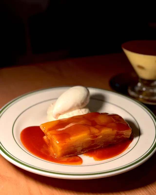 甜品食咗𝙏𝙞𝙧𝙖𝙢𝙞𝙨𝙪 咖啡浸手指餅,搭配馬斯卡彭芝士,絲滑又唔膩同𝙏𝙖𝙧𝙩𝙚 𝙏𝙖𝙩𝙞𝙣 (+$𝟐𝟎) 蘋果塔配焦糖奶油和雲尼拿雪糕,依個味道較酸但肉桂香氣突出,口感獨特(´ε` )