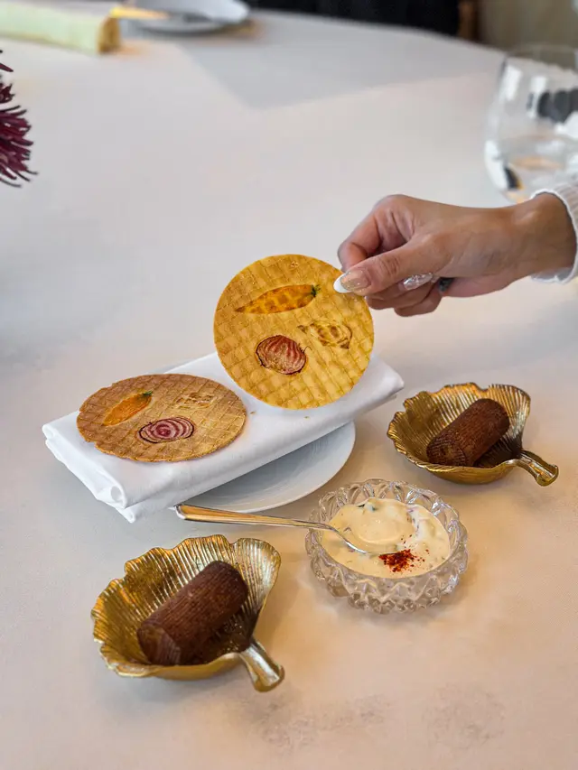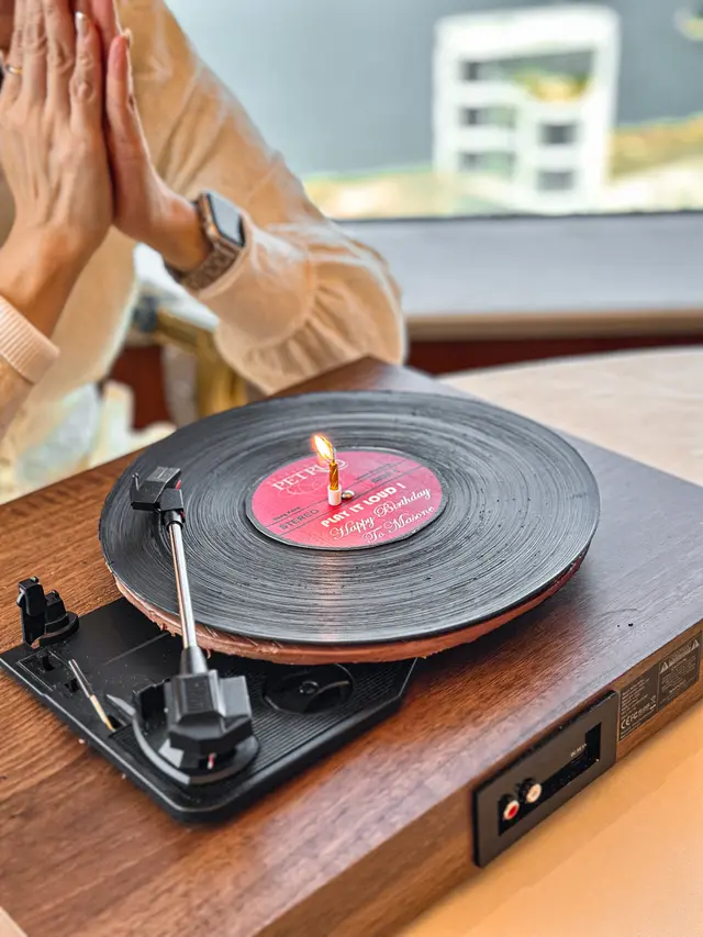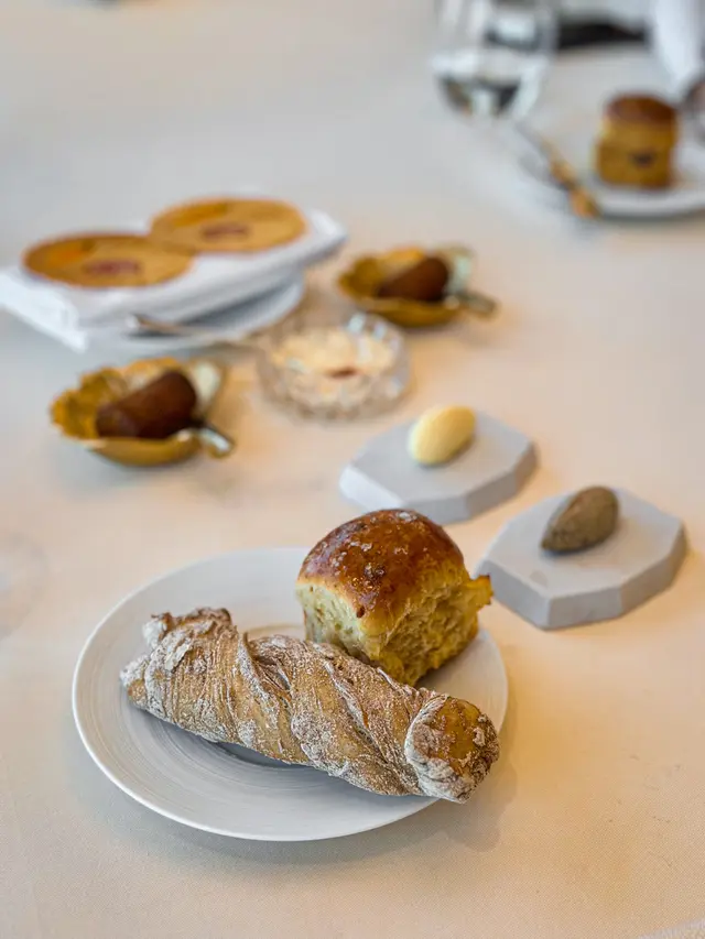 開頭既Amuse Bouche都好有心思 有個好可愛既野菜waffle 上面真係壓左d蘿蔔仔/洋蔥仔片😳😍麵包又係3款任揀 鹽牛油同松露牛油都好香🥰生日送既蛋糕係黑膠唱片咁既樣💿(朱古力味但唔好食haha🫣)今次Petit Four係太甜既糖餅類就唔係好啱我口味~