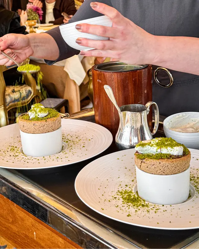 甜品見到𝘾𝙝𝙤𝙘𝙤𝙡𝙖𝙩𝙚 𝙎𝙤𝙪𝙛𝙛𝙡𝙚 𝙬𝙞𝙩𝙝 𝙋𝙞𝙨𝙩𝙖𝙘𝙝𝙞𝙤 𝙄𝙘𝙚 𝘾𝙧𝙚𝙖𝙢毫無懸念一定揀佢💚🥰店員會將開心果雪糕塞入去朱古力味嘅疏乎厘入邊(有片!)疏乎厘輕盈濕潤fluffy朱古力味香濃😍開心果雪糕凍冰冰 食落有冰火交融嘅感覺😌最底仲有濃濃既開心果praline! 係我食過最好食嘅疏乎厘🥹💗