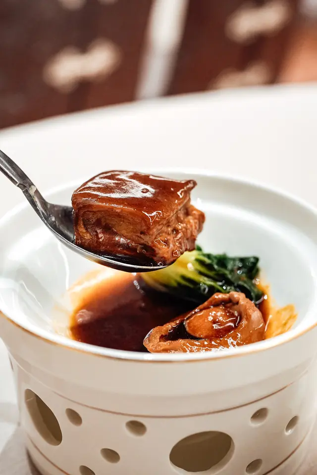 超大嚿晶凝通透半肥美嘅豬腩肉🐷慢火主持入口即溶,仲配上八頭湯鮑魚!
