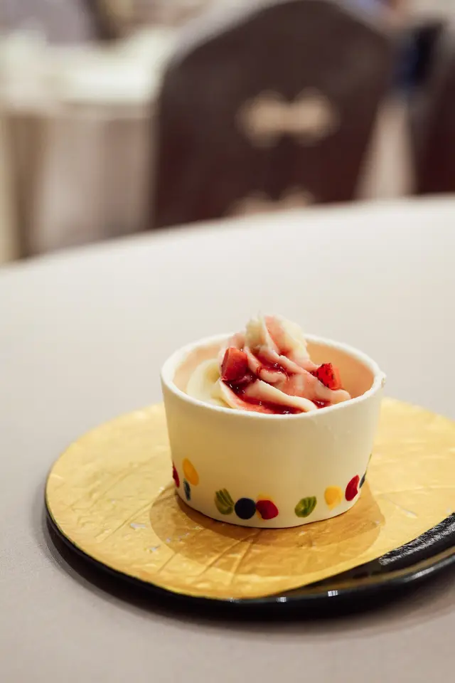 再加上白朱古力及士多啤梨醬,頗特別嘅一款甜品。