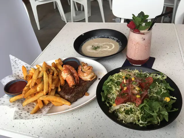 肉眼要5成熟, 厚厚的肉眼煎得剛剛好, 充滿肉汁的肉眼十分嫩滑, 每一啖都好入味。大蝦有2大隻, 蝦殼煎得卜卜脆。蝦肉爽甜。再配上大大份的薯條, 真係食到好飽好滿足
