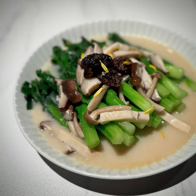 我們還點來一碟清爽的野菌魚湯浸菜心,那個濃郁香甜的魚湯絕對有令菜心升價十倍的味力。