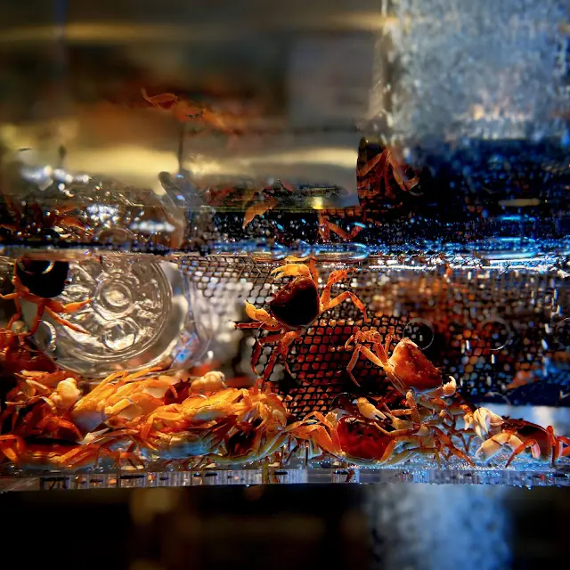 然後行近魚缸見到一群生猛的小蟛蜞跟我Say Hi,於這晚其中一道菜我們也可以品嚐得到。