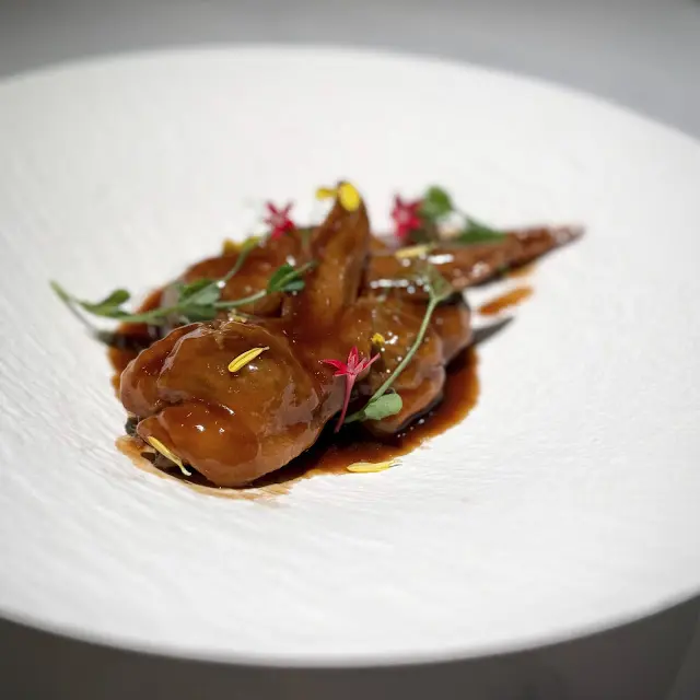 接下來這道是我挺喜歡的雞同鴨講!亦是Chef Silas其中一款招牌菜,坦白講平時外出品嚐鵝掌真的有點失儀!Chef很細心地將鵝掌去骨讓入無骨雞翼當中,造就成這道啖啖精華不用吐骨的美味菜式,再配襯濃郁黏嘴的鮑汁成件事非常美妙。