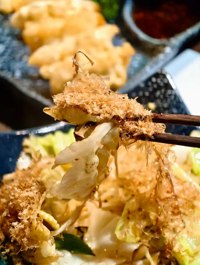 只用上最脆嫩的部位,口感非常脆嫩,味道清甜,加了七味粉來調味,有點辣。