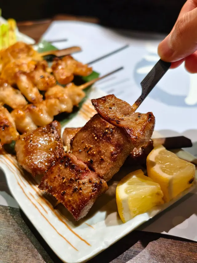 燒得焦嫩的厚切牛舌,吃起來肉嫩多汁,油脂豐富,牛肉味濃。