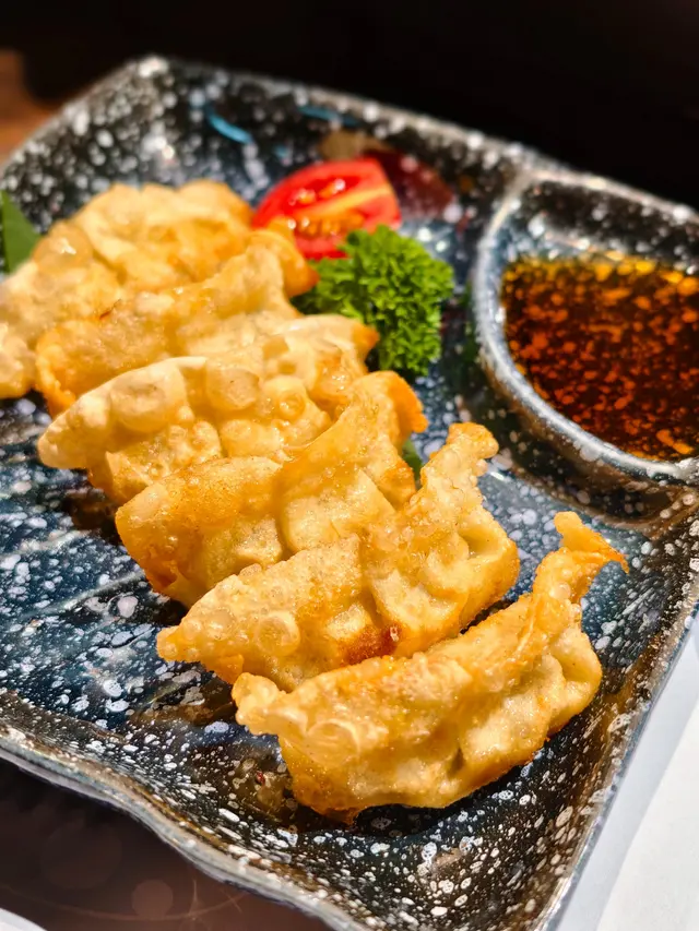 炸得非常香脆,但餃子還保留到肉汁,中間是菜肉餡料,味道帶點甜。