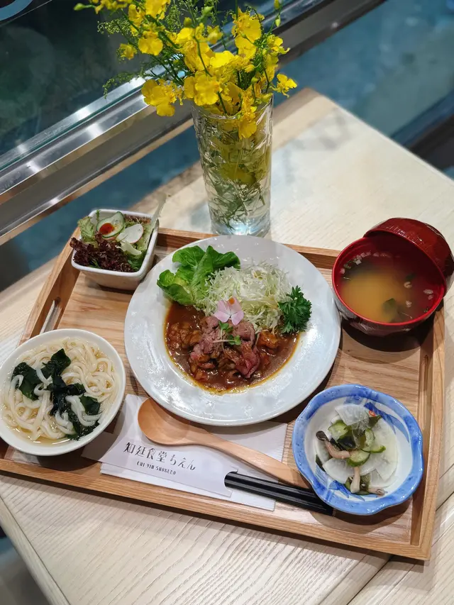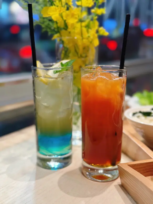 來到新店就來試吃其他吧!店員推薦兩款:南蠻風炸雞跟咖喱野菜牛肉,南蠻風炸雞是由炸漿到醬汁都是店家自行調配,炸雞大大件,金黃色的外表每粒跟乒乓球差不多大小,薄薄的炸漿吃起來外脆內軟,肉質仍保持嫩滑也滿有肉汁,雞肉已作調味再加上自家製蛋黃醬汁就變得更惹味好吃!而咖喱野菜牛肉是我很喜歡的日式甜咖喱,牛肉煮至粉嫩紅色所以吃起來還是很腍滑也吸收了咖喱的香氣~ 兩款都很好吃啊就看你愛吃哪一類!兩款食品標配的跟牛肉丼一樣有白飯、味噌湯、沙律菜跟漬物,味道都一如既往的水準不錯;至於白飯也可以改配成日式烏冬或將套餐改為烏冬定食,烏冬的口感軟滑,搭配昆布和鰹魚湯味道清淡,所以配相對濃郁味道的主食就變得很搭啊~ 烏冬定食會跟配一杯香橙紅茶,也可以額外點其他飲品,推薦點來荔枝西柚梳打,香甜又清爽!