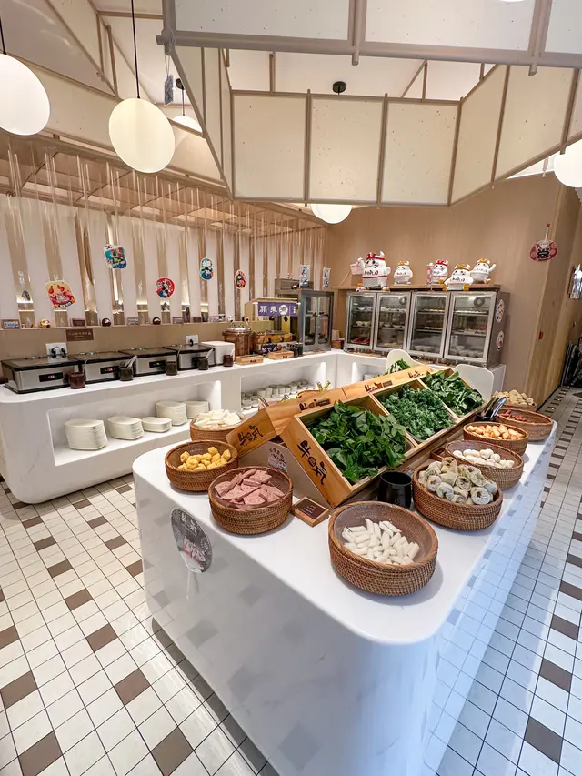 仲有自助區真係超豐富,一行過去已經眼花撩亂!甜品有香滑軟雪糕、棉花糖同埋嫩滑豆腐花,飲品選擇又多又齊。熟食熱辣辣,杞子雪耳糖水清甜滋潤,蔬菜菇菌新鮮爽脆,火鍋配料多到揀唔晒,好想全部都試晒!