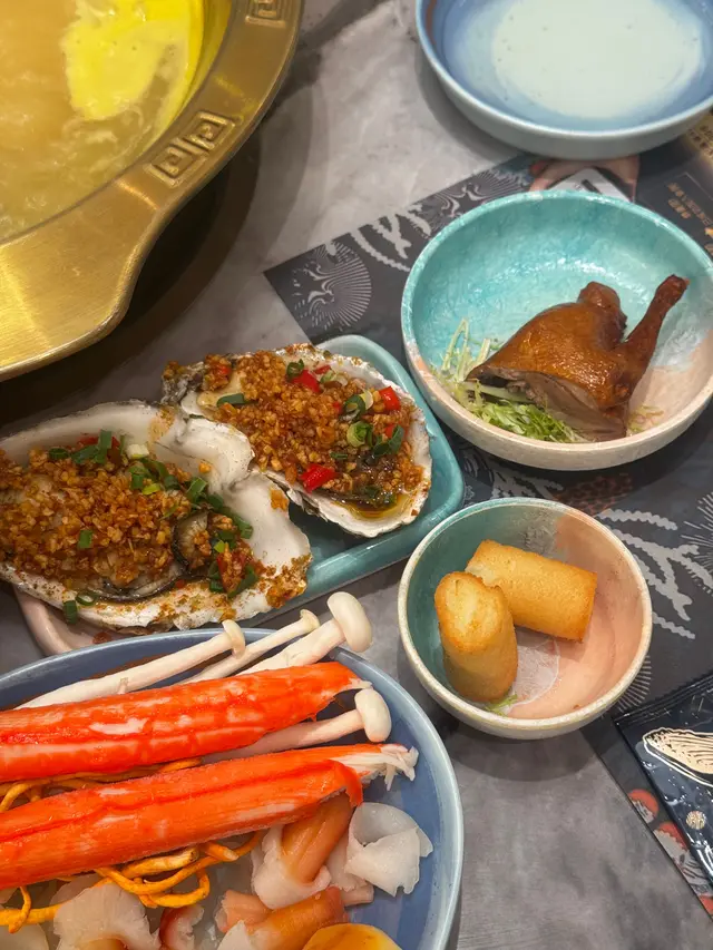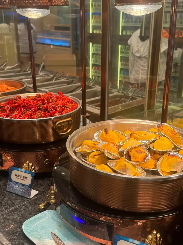 自助區嘅火鍋配料及熟食都琳瑯滿目😍海鮮粥、蛇羹、烤榴槤、麻辣小龍蝦、蒸點心等講得出嘅都有。另外仲有中式前菜、煙三文魚、水果等。火鍋配料有雞子幾特別😛
