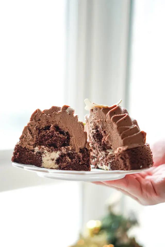 反而用上大量香濃朱古力忌廉,但口感實在,一啲都唔膩,包住戚風蛋糕,仲有香濃朱古力醬及脆脆😋