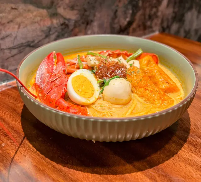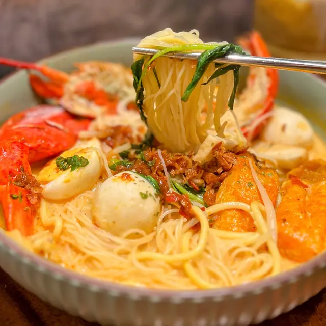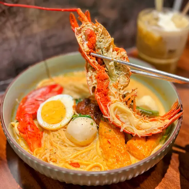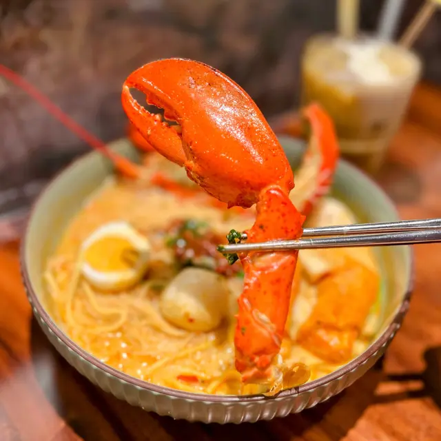 叻沙裏的龍蝦充滿龍蝦膏,龍蝦鉗又非常大隻,叻沙還份量十足,單是看到它的樣子已經十分吸引!龍蝦膏非常甘香,龍蝦又爽彈鮮甜,加以摻(油麵+米粉)、索了湯的豆卜、爽彈的魚蛋和魚片一起吃,口感和味道都特別豐富,不過我們略嫌湯底的味道有點不夠濃郁,但整體依然不錯!