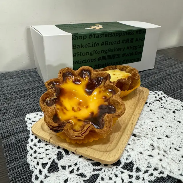 花花型撻皮好靚,有別於普通嘅千層撻~ 呢個千層撻有焦糖面,中間有蛋漿,最底仲有一層焦糖醬,所以食落好甜,個人嚟講覺得有啲太甜,而且蛋味會被焦糖味蓋過咗🙊 千層撻好酥脆,厚薄適中,但都要當日盡快食/買返屋企焗返熱食,如果唔係撻皮會比較韌。