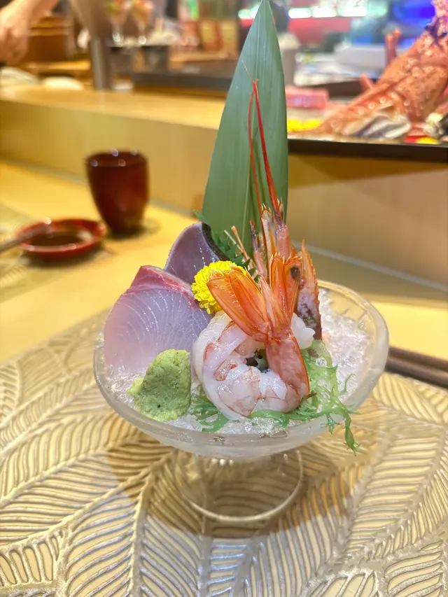 刺身3款+ 特色散壽司,刺身有鏗魚油甘魚同蝦 及海膽魚子壽司杯(賣相靚靚)魚子咬爆開連海膽架鮮甜!上癮呀😻