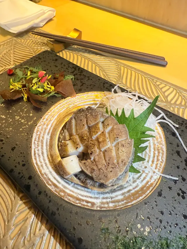 前茶海膽腐片,海鮮沙律及合核魚仔!