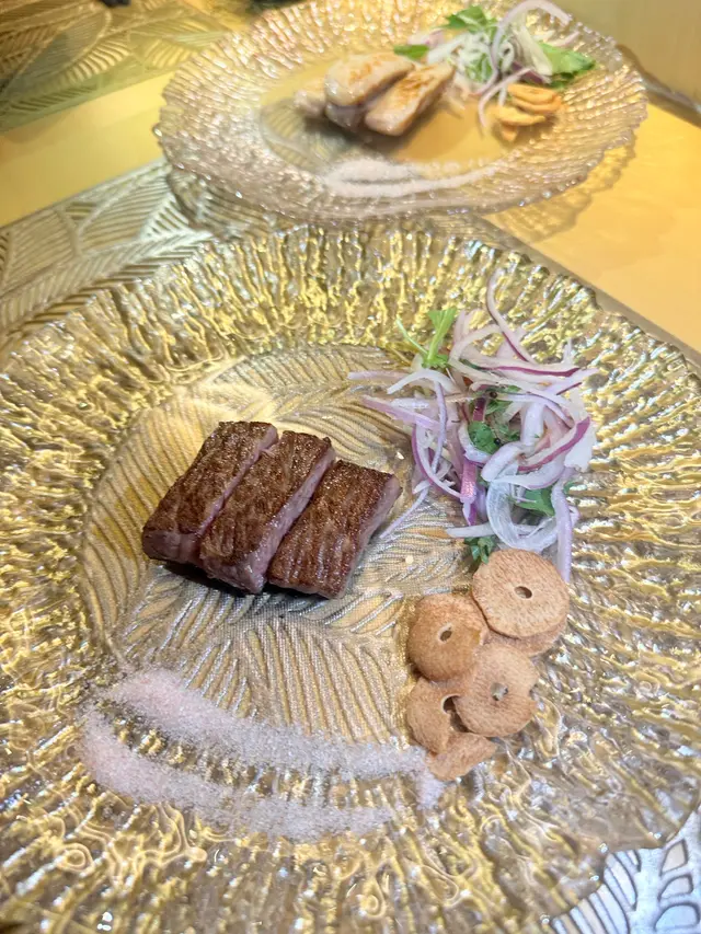 日本古崎和牛/西班牙黑毛豬,因為兩個人,每樣都要啦,伴脆脆蒜片,豚肉同牛都是多汁juicy 入口即溶🫶🏻