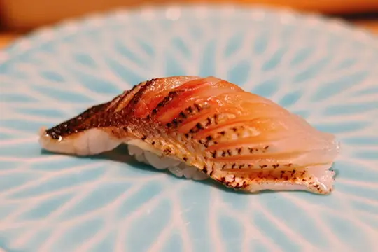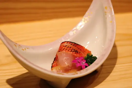 靜岡金目鯛仲要熟成再火炙,配埋醋麵豉同蔥水,肉質彈牙又有獨特嘅發酵香