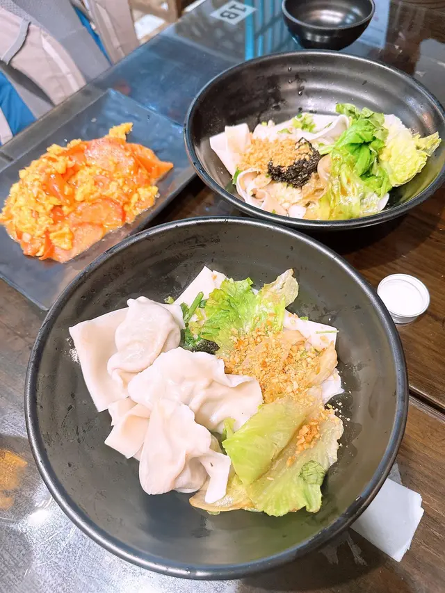 我哋好肚餓,嗌咗勁多嘢食: 麻醬青瓜、蕃茄炒蛋、韭菜餃biang biang面、乳香雞翼biang biang面、臘汁肉夾膜、土豆夾膜、炸韭菜豬肉餃子、炸湯圓、爆漿紅糖糍粑,仲有最後兩款嘢飲凍桂花烏龍樽仔茶、原味豆漿