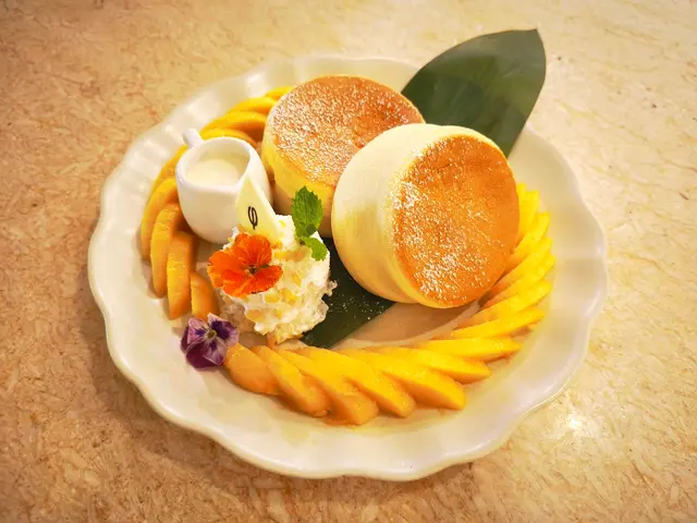 將芒果糯米飯嘅元素融入梳乎厘 pancake 入面, 食落去有梳乎厘嘅鬆軟, 又有芒果嘅香甜同糯米嘅煙韌, 成個甜品好有層次