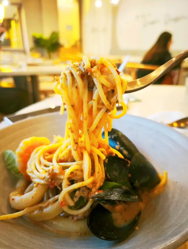 好特別既 fusion 菜式, 將泰國嘅冬蔭功湯同意大利嘅意粉結合埋一齊