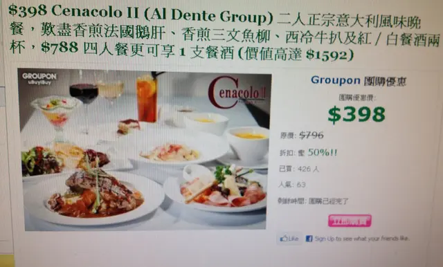 我和女友經 Groupon 買了 $398 Cenacolo II (Al Dente Group) 2人意大利晚餐...真係兩個字 - "超正"!!!