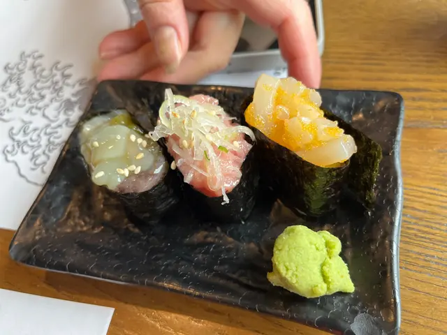 甜蝦刺身有一隻斷咗好有趣,正常唔應該出火,雖然質素應該冇影響,但係賣相會有啲差蝦膏係藍色 唔知點解呢?🙈魷魚刺身$52有啲貴,份量唔算好多質素合格吧。