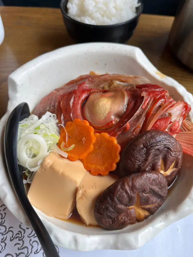 嗌咗我一個好鍾意嘅汁煮魚頭,應該都係頭先嗰隻魚,似金目鯛嗰隻 眼珠非常大,上枱好靚仔!不過想食好多魚肉嘅就唔使嗌呢個,呢度主要都係食佢嘅肉同埋魚餃極少嘅肉,廚師亦都好好功夫,咁樣切得好人唔會留好多肉😅😅😅 感覺呢間舖頭有啲孤寒 順帶一提,呢度飯嘅份量唔會比好多如果你想要少少老闆就會叫你$12加一碗
