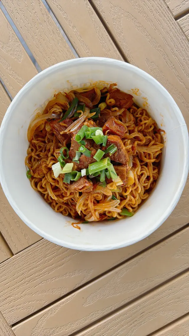 勁葱雙丁:🍝鐘意食五香肉丁嘅人有口福啦,葱、五香肉丁、出前一丁,三者配搭令人回味無窮😘 男朋友都大讚!